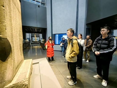 活动伊始,党员们齐聚千年石经之下,通过专题讲解系统学习碑林作为 “石质史书” 的历史渊源与时代价值,从《周易》《尚书》等经典刻石中触摸中华文脉的延续脉络,沉浸式的体验让大家深刻认识到守护和传承中华优秀传统文化,是新时代青年党员义不容辞的责任。