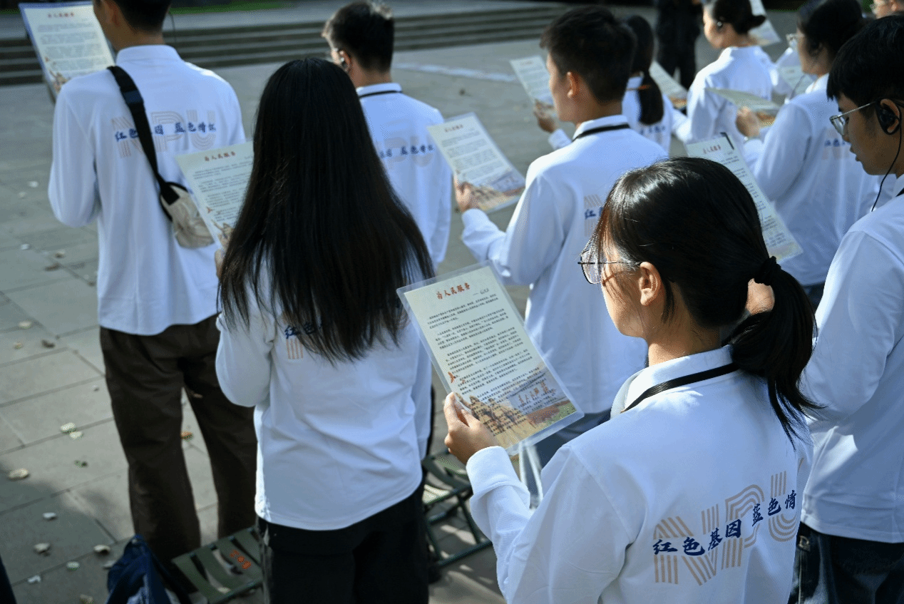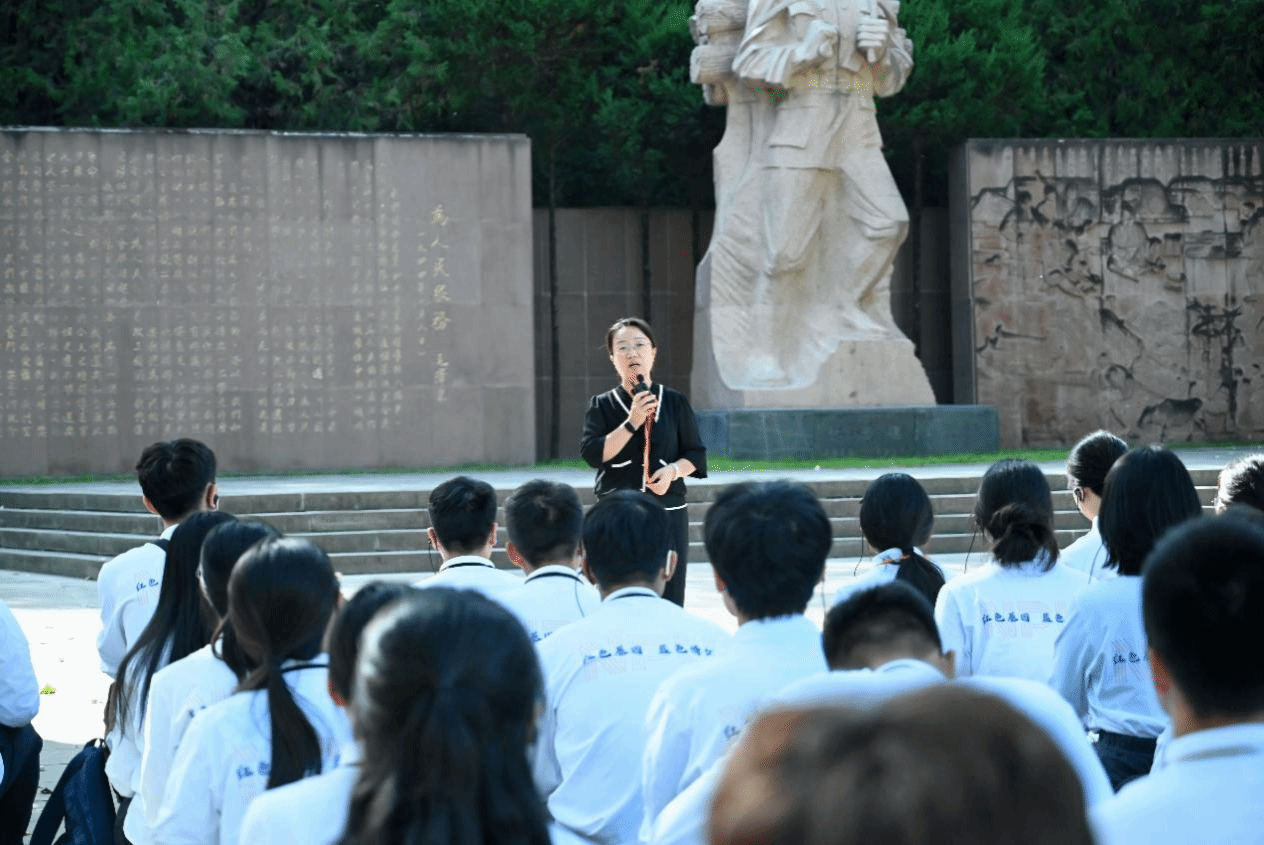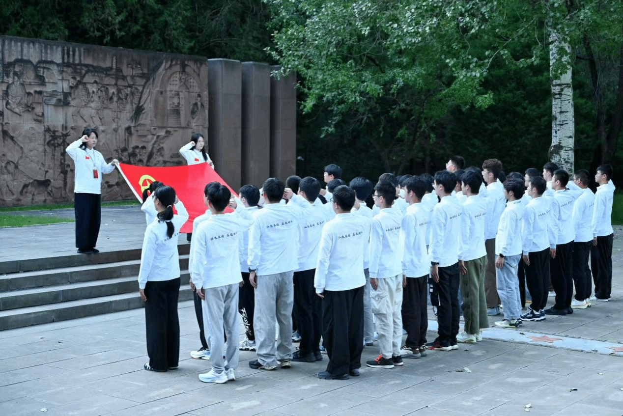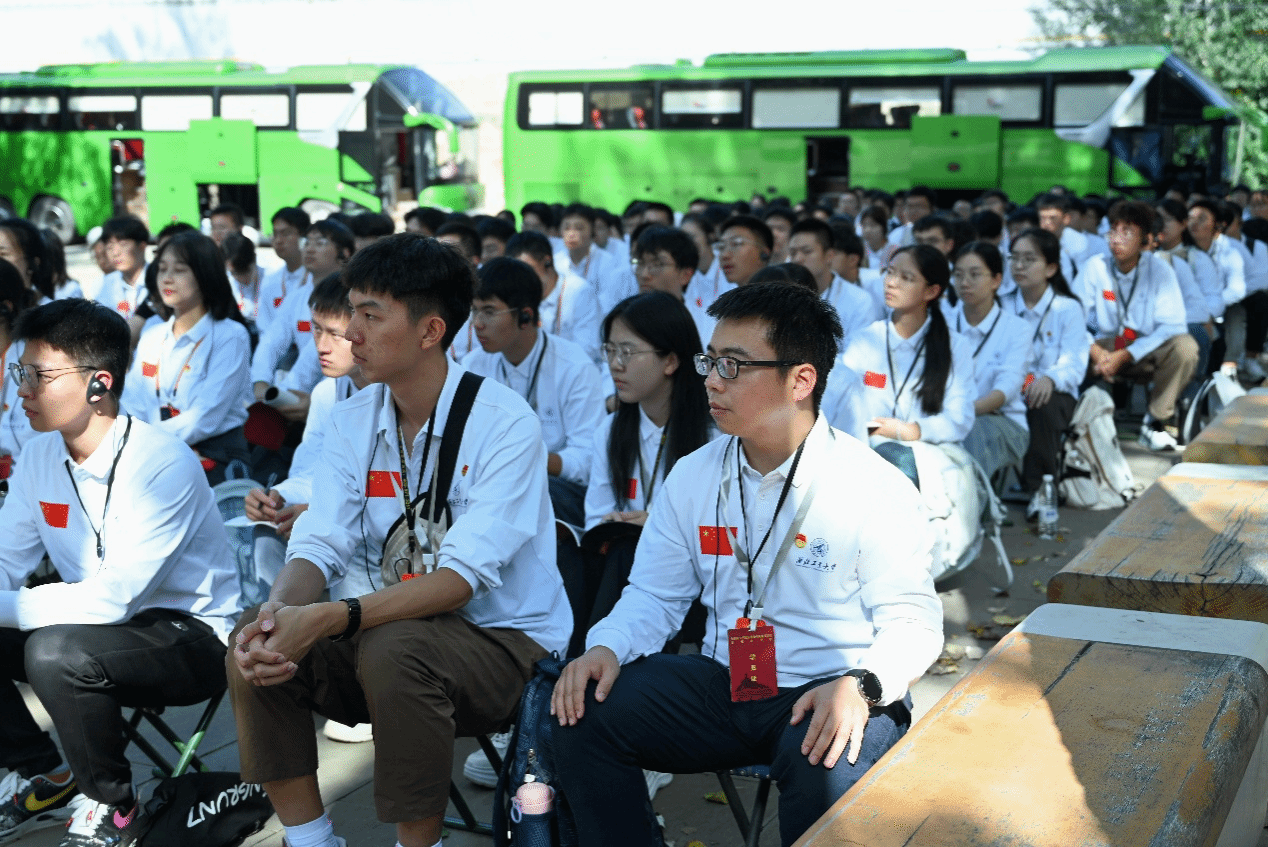 9月13日下午,实践队伍首先抵达张思德纪念广场。在张思德雕塑前,师生们聆听这位“为人民服务”典范的光辉事迹,集体诵读《为人民服务》,并在党旗与团旗下重温入党、入团誓词。一字一句,掷地有声,传递着新时代青年继承先烈遗志、矢志报国的决心。