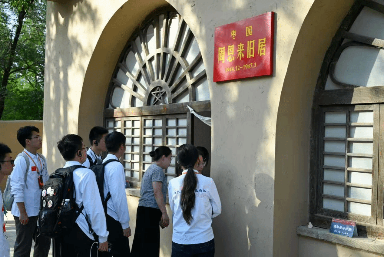 随后,师生们走进枣园革命旧址。一间间朴素的窑洞、一张张斑驳的桌椅,无声诉说着老一辈革命家艰苦卓绝的奋斗历程。同学们缓步参观,细致聆听,在毛泽东、周恩来等领导人曾经生活和工作过的地方,深刻体会“延安作风”的伟大力量。